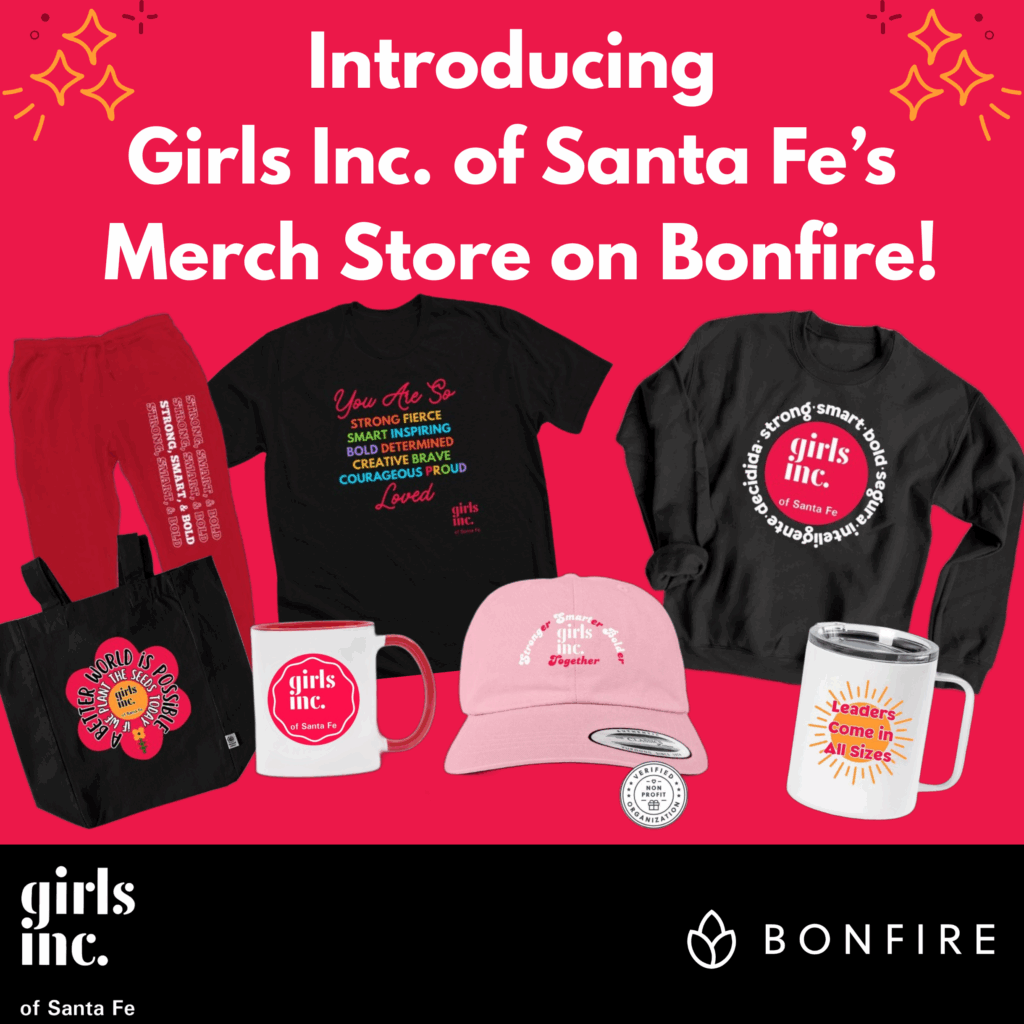 We’ve launched a brand-new Bonfire store featuring exclusive Girls Inc. of Santa Fe merchandise not available anywhere else. Choose your favorite style, design, and color—there are multiple options to fit your unique style! Bonfire takes care of everything for us: Printing, Shipping, and Customer Service. Proceeds from every purchase go to support Girls Inc. of Santa Fe. Your purchase directly supports our mission to inspire girls to be strong, smart, and bold. Plus, you’ll get some super cute merchandise to represent your favorite nonprofit!